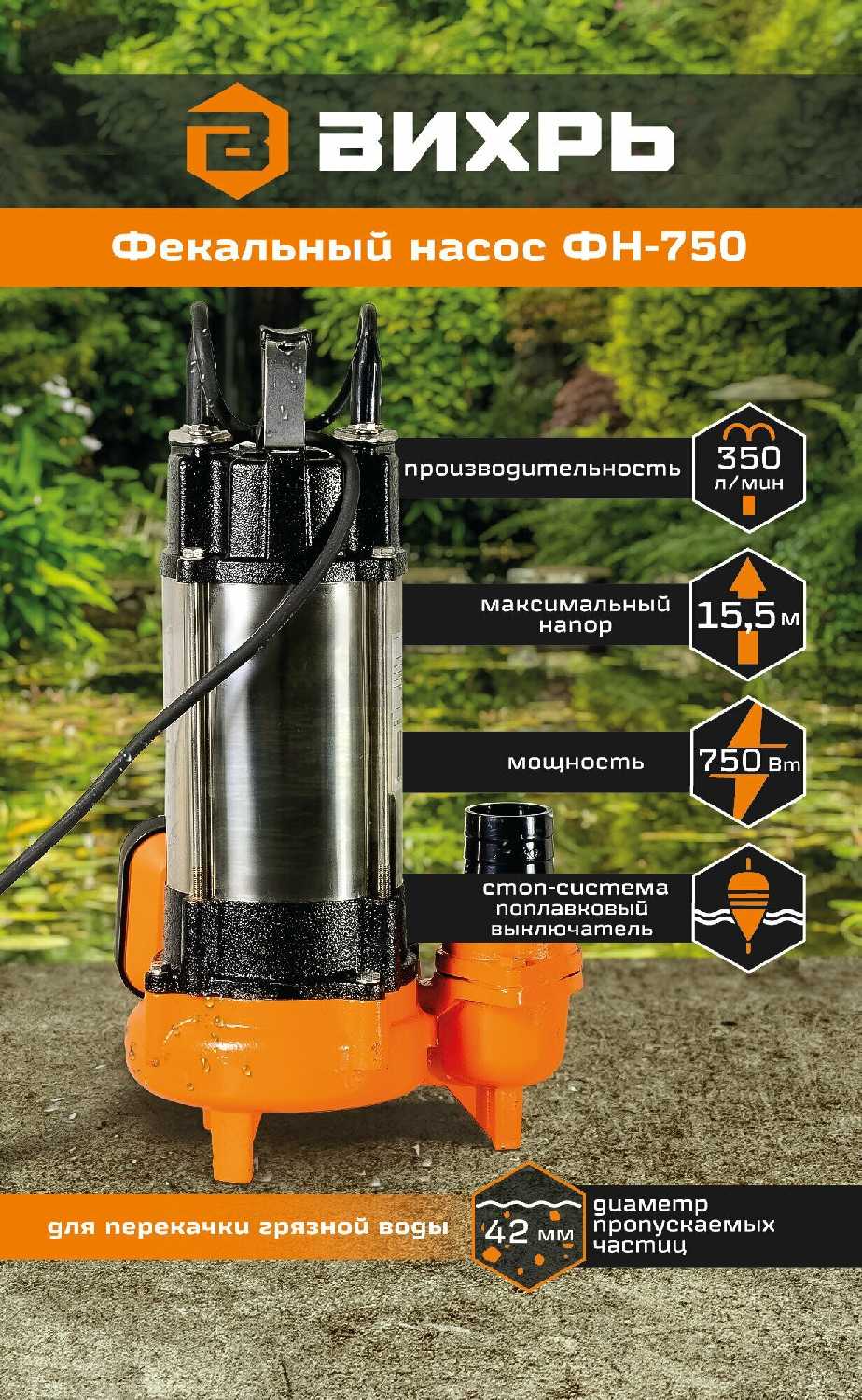 - Эффективен для дренажа подвалов, очистки септиков и полива из загрязненных водоемов.