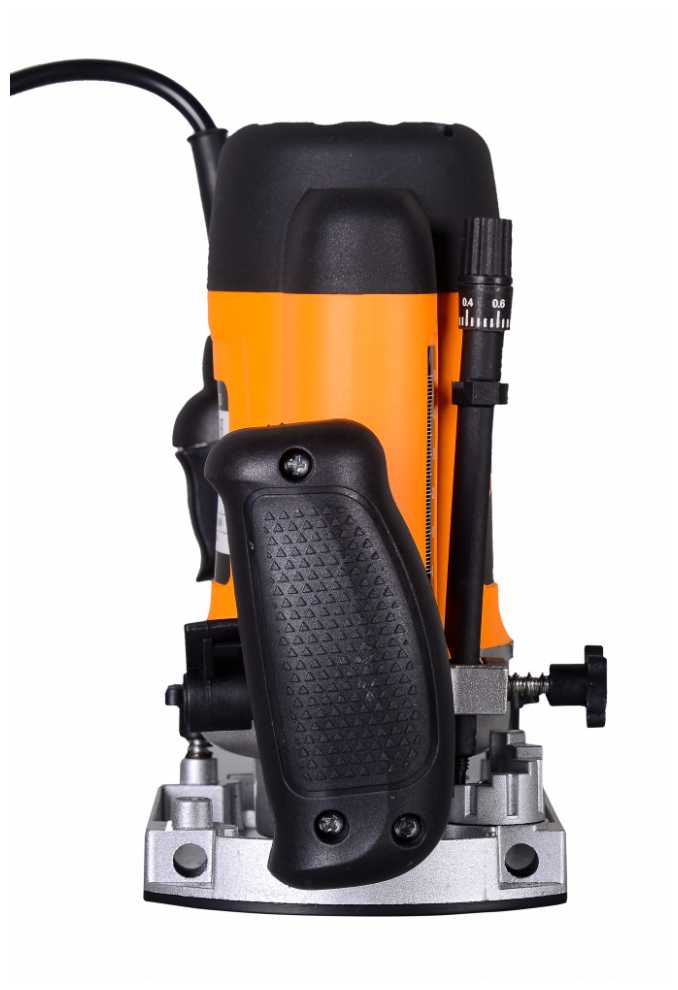 - Лифтовый механизм с градуированной шкалой обеспечивает погружение фрезы до 50 мм, что критично для выборки пазов и врезки петель.