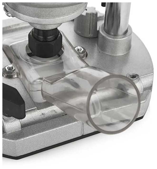 Фрезы в комплект не включены — их нужно покупать отдельно. Из аксессуаров есть параллельный упор, копировальная втулка, ролик и переходник для пылесоса. Однако качество штатного упора критикуют из-за люфтов. -