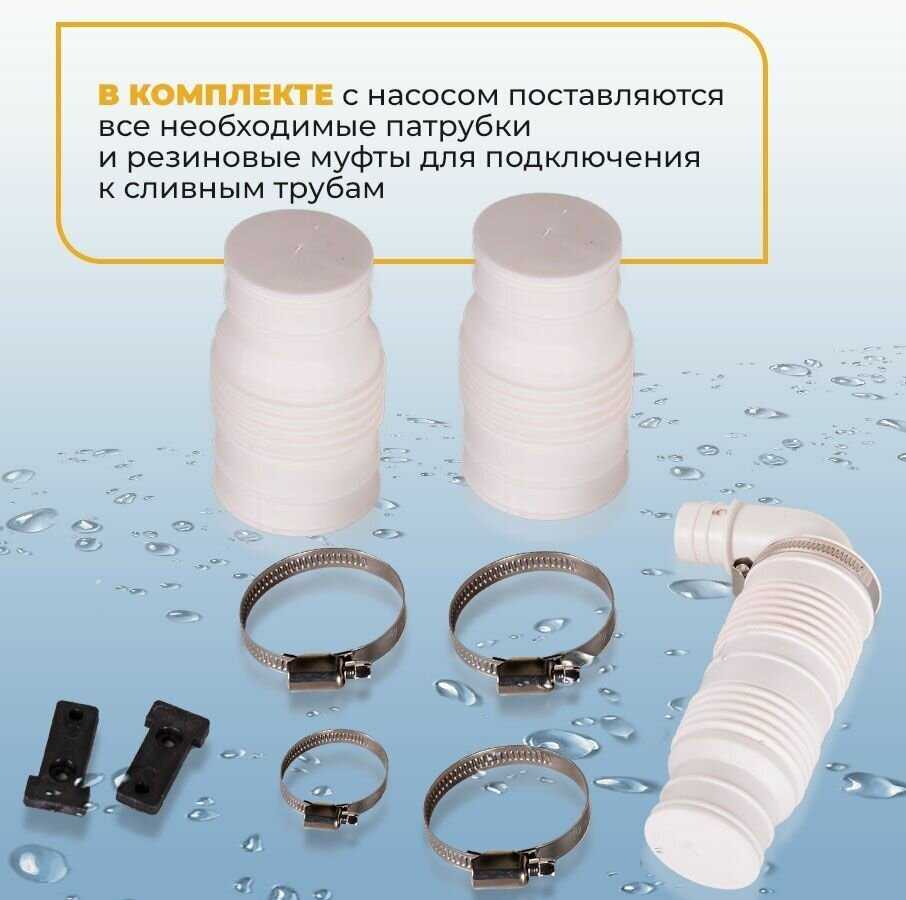 - Технический параметр: датчик уровня с диапазоном срабатывания 5-50 мм обеспечивает корректное включение/отключение даже при малом объеме стоков.