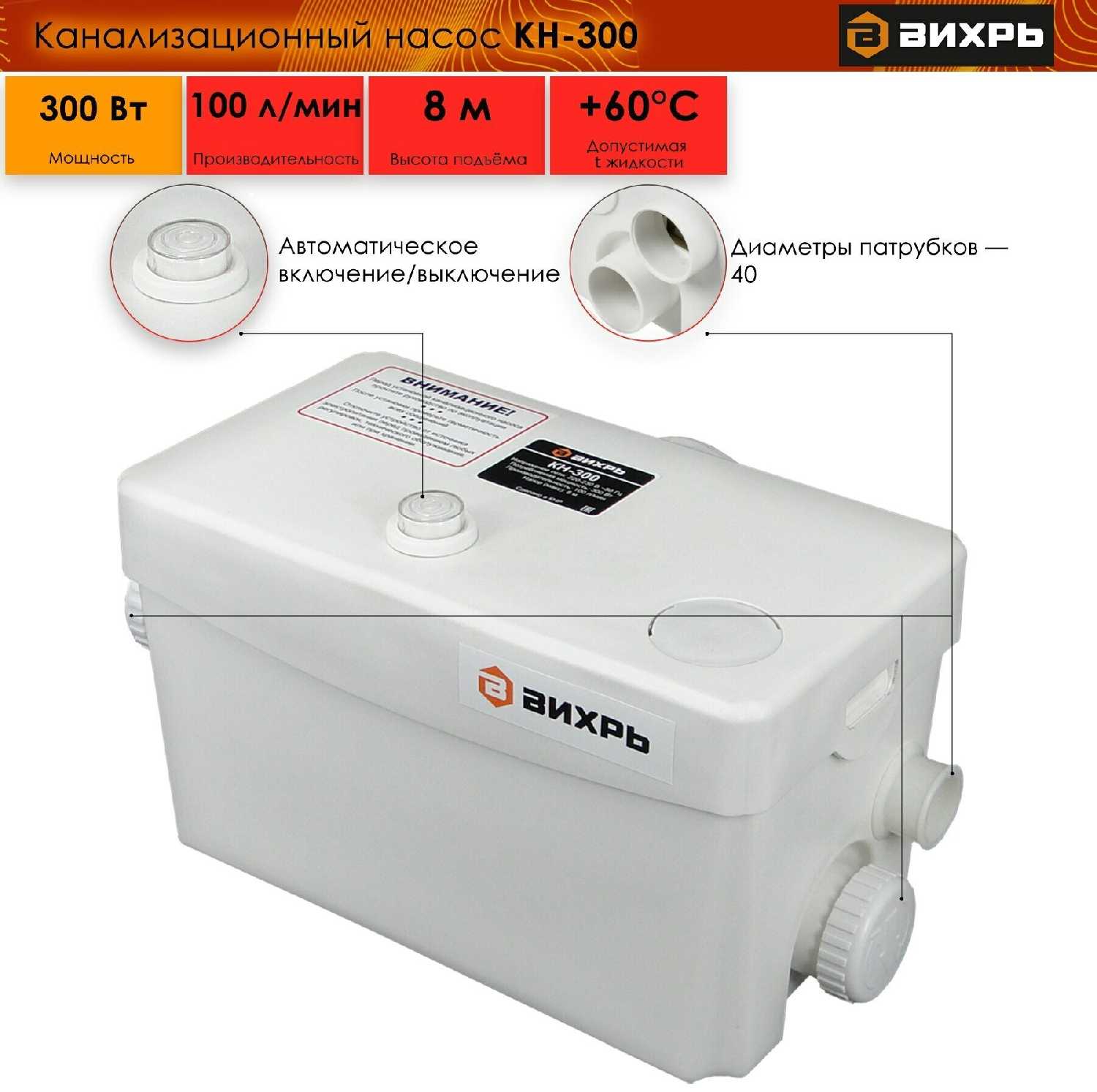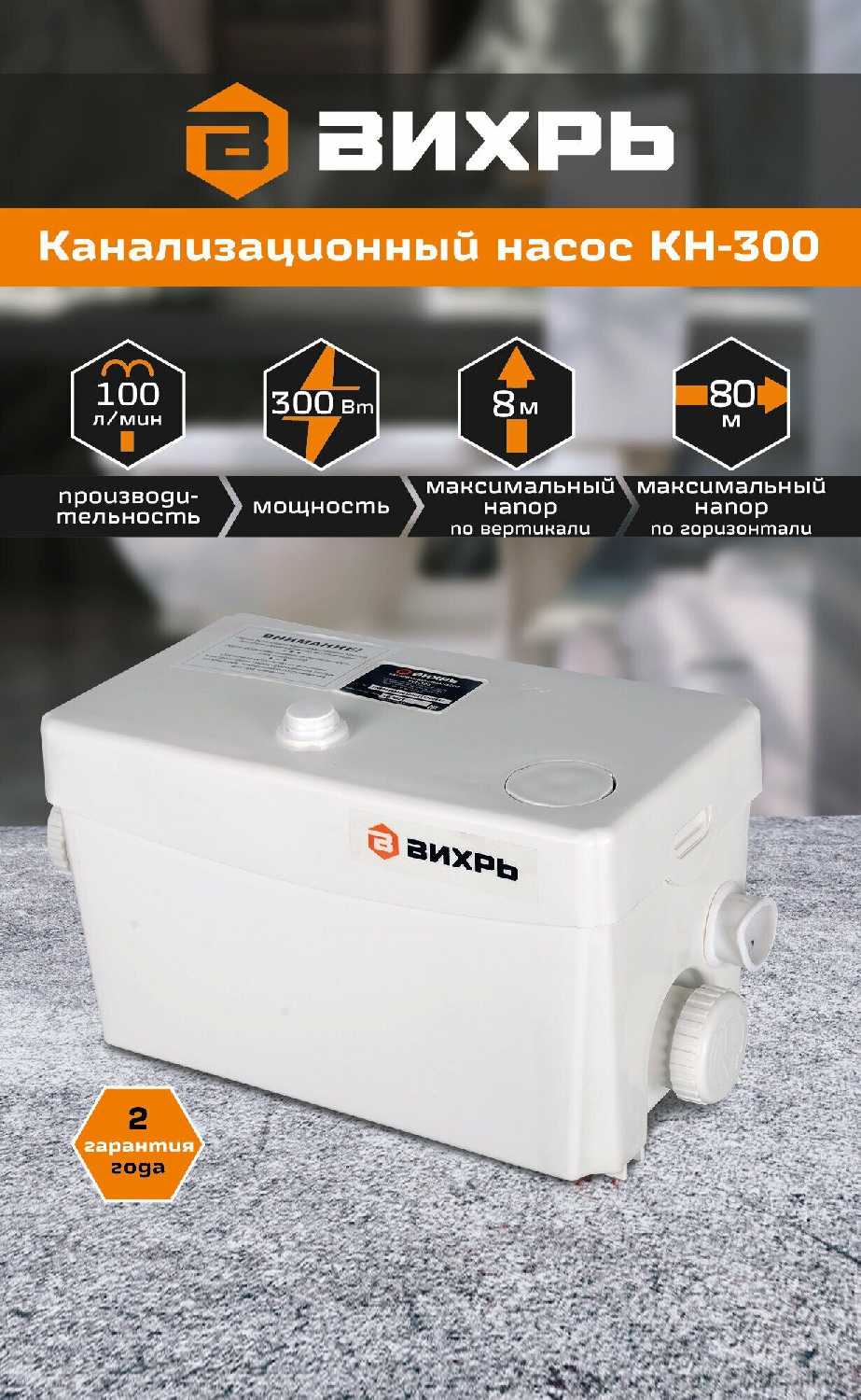 Насос Вихрь КН-300 демонстрирует высокую эффективность в автоматическом режиме: пользователи отмечают, что он включается только при заполнении резервуара и отключается после откачки, что экономит электроэнергию. Однако некоторые столкнулись с короткими циклами работы (2–3 секунды), вероятно, из-за компактного корпуса и ограниченного хода поплавка. В условиях интенсивного использования (например, при одновременном сливе из трёх точек) устройство справляется без перегрузок, хотя при малом объёме воды задержка запуска достигает нескольких минут. Автоматика исключает необходимость постоянного контроля, но отсутствие измельчителя требует осторожности: бумага проходит, а вот влажные салфетки или крупные частицы приводят к засорам. Защита от перегрева и сухого хода работает исправно, что подтверждают отзывы о многолетней эксплуатации в гипсовом производстве. При этом ряд пользователей критикуют «халатную» инструкцию, где не указаны нюансы вроде снятия заглушек с клапанов.