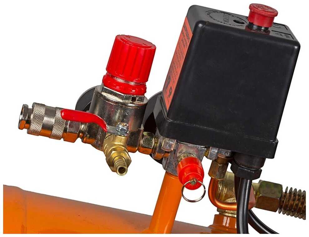 Реле давления чётко контролирует циклы работы: компрессор самостоятельно включается при падении давления в ресивере и отключается при достижении заданного значения (например, 8 бар). Пользователи подчёркивают, что это позволяет не отвлекаться на контроль агрегата во время покраски или работы с инструментом. -