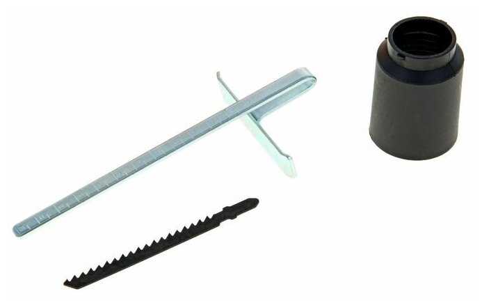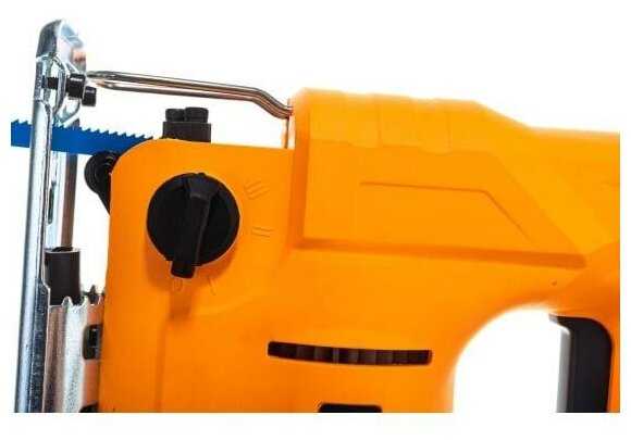 - Металлическая направляющая удерживает пилку в линии, улучшая точность при фигурных вырезах в деревянной мебели или ПВХ-панелях.