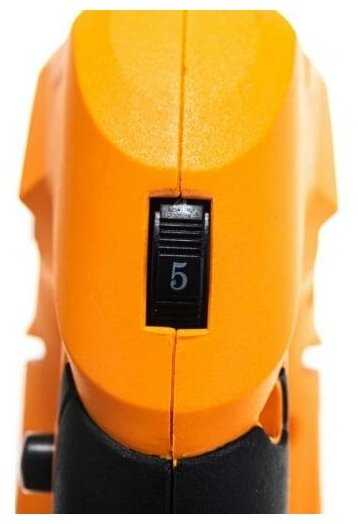 - Регулятор оборотов в 5 ступенях адаптирует частоту хода под материал, предотвращая перегрев при резке ПВХ или гипсокартона и обеспечивая аккуратный срез.