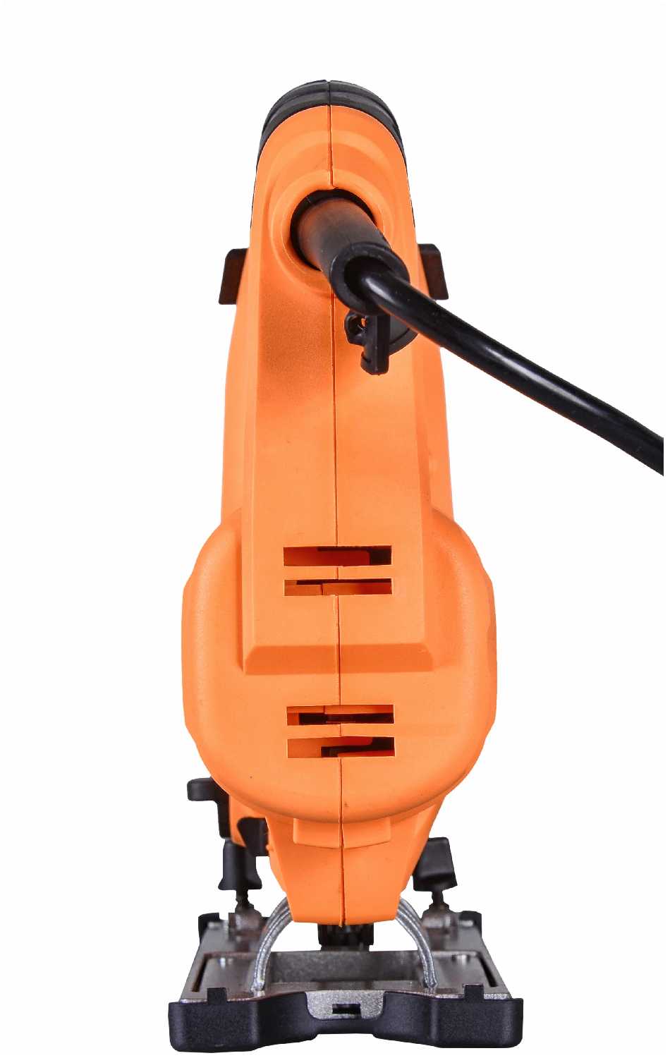 Металлическая подошва обеспечивает устойчивое скольжение по материалу, предотвращает перекосы и повышает точность реза. Пользователи подчёркивают её жёсткость и износостойкость при работе с деревом, металлом и пластиком. Для защиты поверхностей от царапин можно наклеить малярную ленту на основание. -
