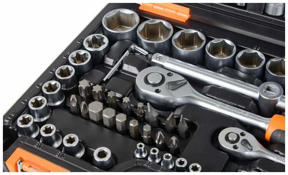 - + Хорошая комплектация, качественные головки и удлинители. В кейсе есть все необходимое для большинства работ. Удобный кейс, всё на своем месте.