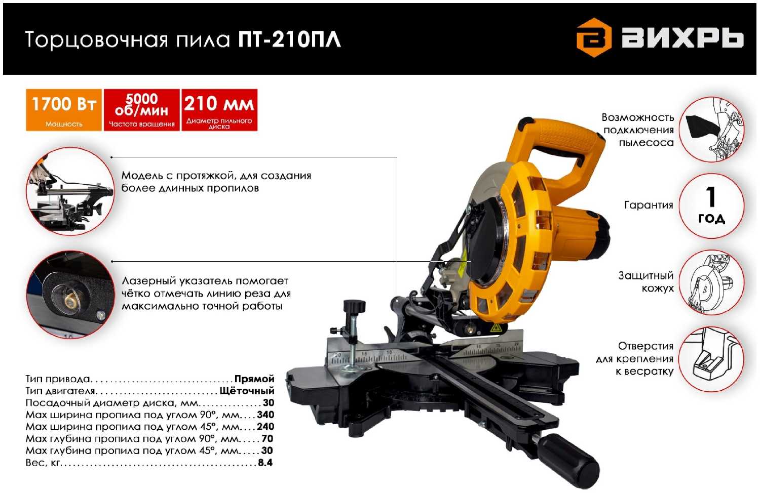 Отзывы о Торцовочная комбинированная пила ВИХРЬ ПТ-210ПЛ