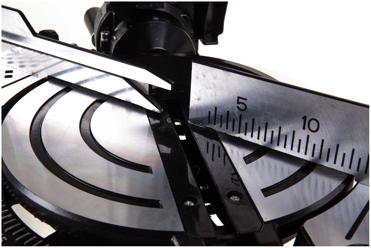 Точность зависит от ручной настройки и фиксации углов. При затягивании ручки поворотного стола может происходить смещение на 1-2 мм, что требует контрольного пропила и дополнительной подстройки. Лазерный указатель изначально помогает выставить линию, но при интенсивной работе он забивается опилками, снижая видимость. Для ответственных стыков (например, при отделке окон) рекомендуется использовать угольник для верификации. -