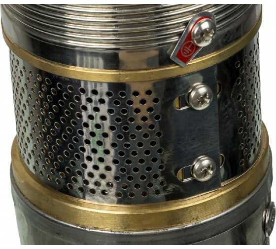 Забор у насоса верхний, так же сверху располагается металлическая, петля для погружения насоса