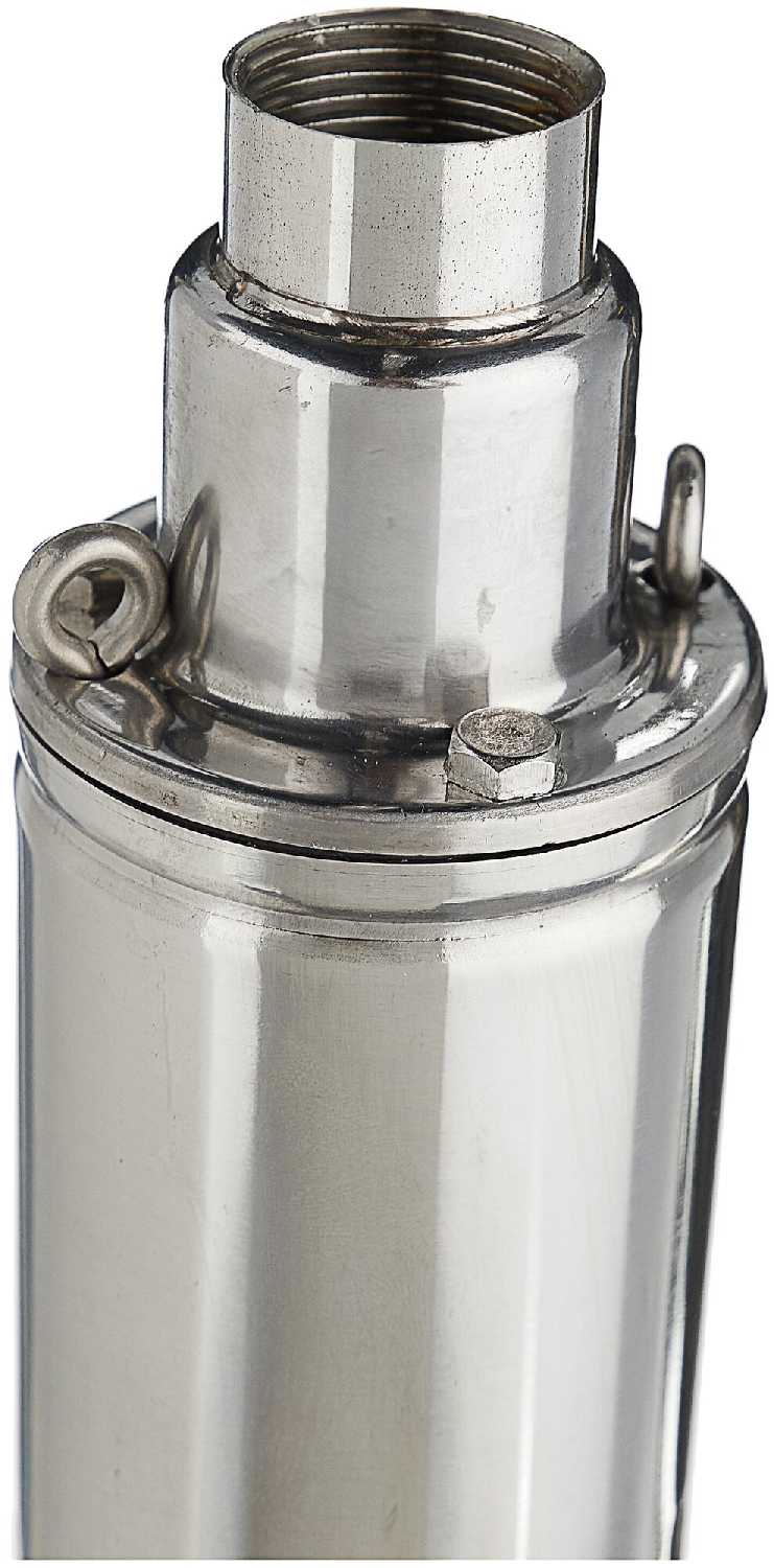 Конструкция и материалы: Корпус из нержавеющей стали — ключевое преимущество: даже после 2–3 сезонов активной эксплуатации следы коррозии отсутствуют. Однако отдельные элементы (шнек, крышка) могут магнититься, что указывает на использование обычной или закалённой стали, подверженной износу при контакте с песком. Рым-болты и стяжные болты в новых партиях выполнены из нержавейки, но в ранних моделях встречался простой крепеж, требующий замены из-за электрохимической коррозии. Шнур питания длиной 20 м удобен для большинства скважин, но при большей глубине требует наращивания. Армированный поливочный шланг в базовой комплектации склонен к схлопыванию после отключения, что решается установкой трубы ПНД и обратного клапана.