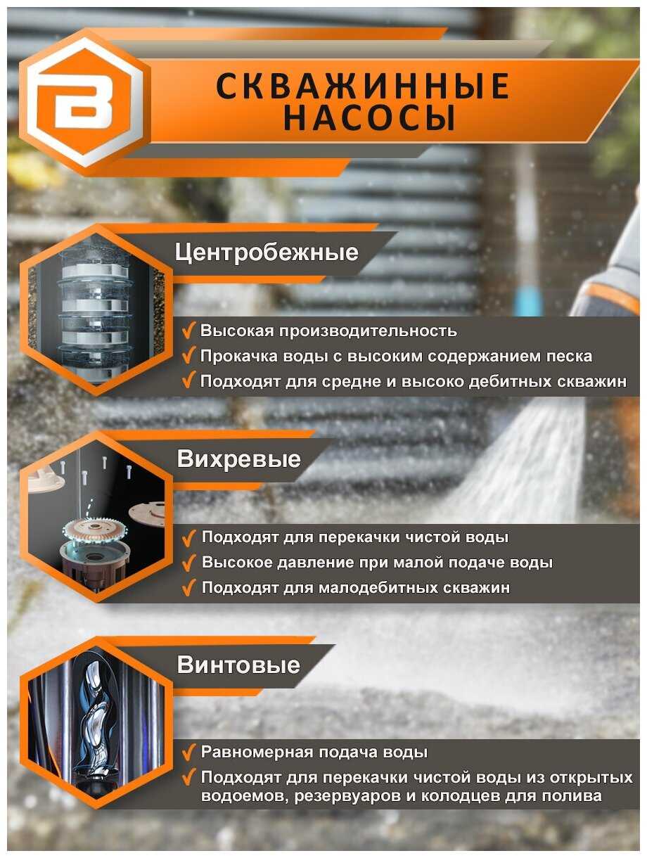 Шум и вибрация: Уровень шума варьируется от «почти не слышно» до выраженной вибрации на высоких оборотах. Гул усиливается при работе на предельной глубине или при износе подшипников. Для скважин, расположенных близко к жилым помещениям, шум может быть дискомфортным, однако в большинстве отзывов его называют терпимым. Вибрация провоцирует заиливание при использовании в узких обсадных трубах, поэтому для таких условий предпочтительнее центробежные, а не вибрационные модели.