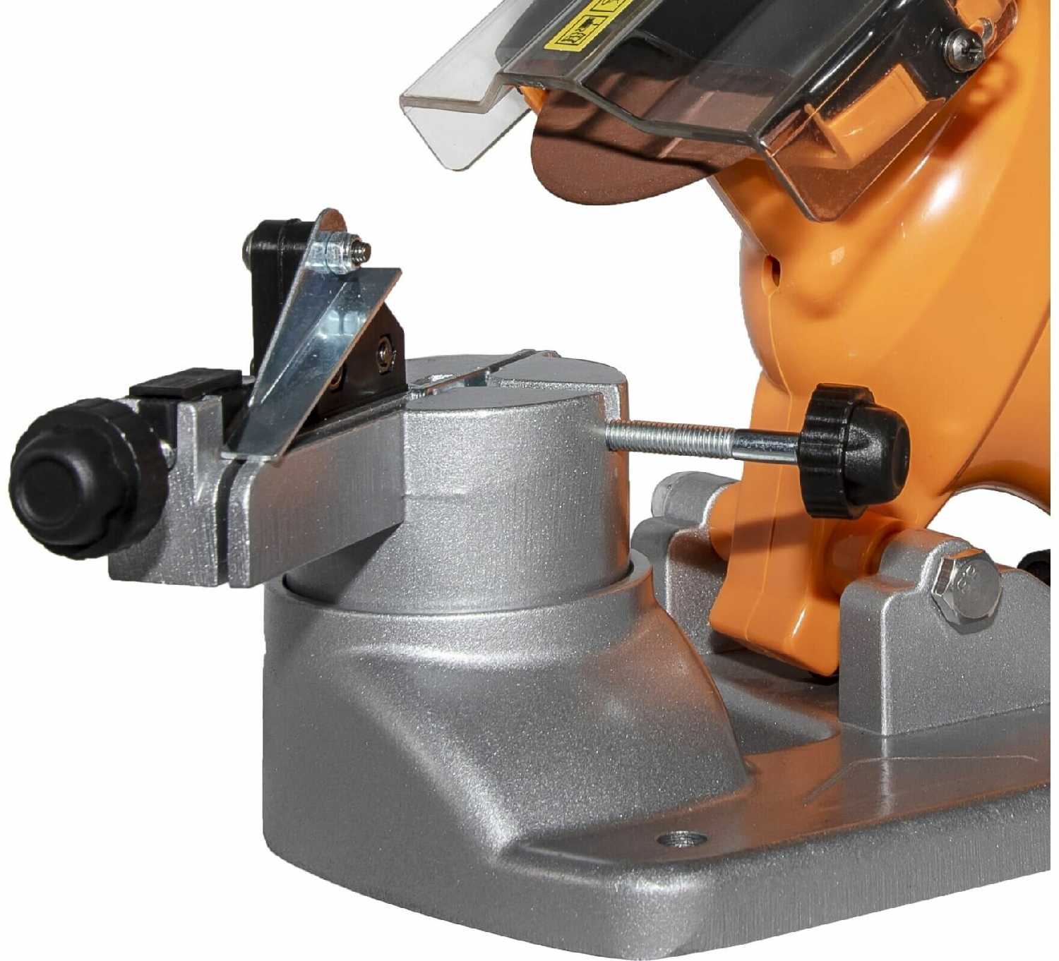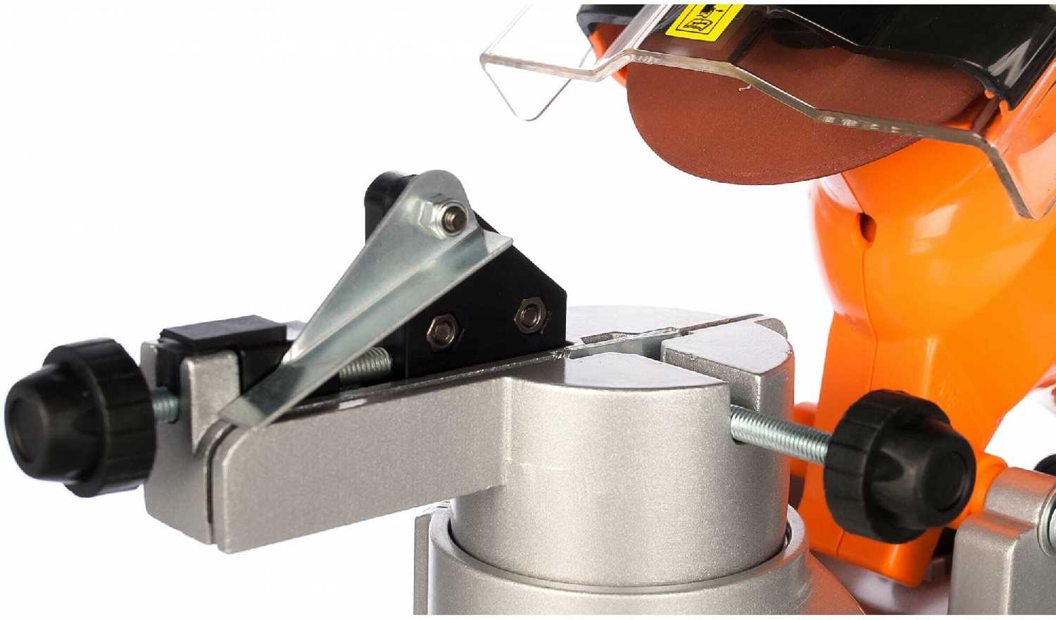 - Механизм выставления градуса обеспечивает жесткую фиксацию, что позволяет поддерживать угол на протяжении всей заточки, повышая равномерность режущей кромки и качество пиления цепи.