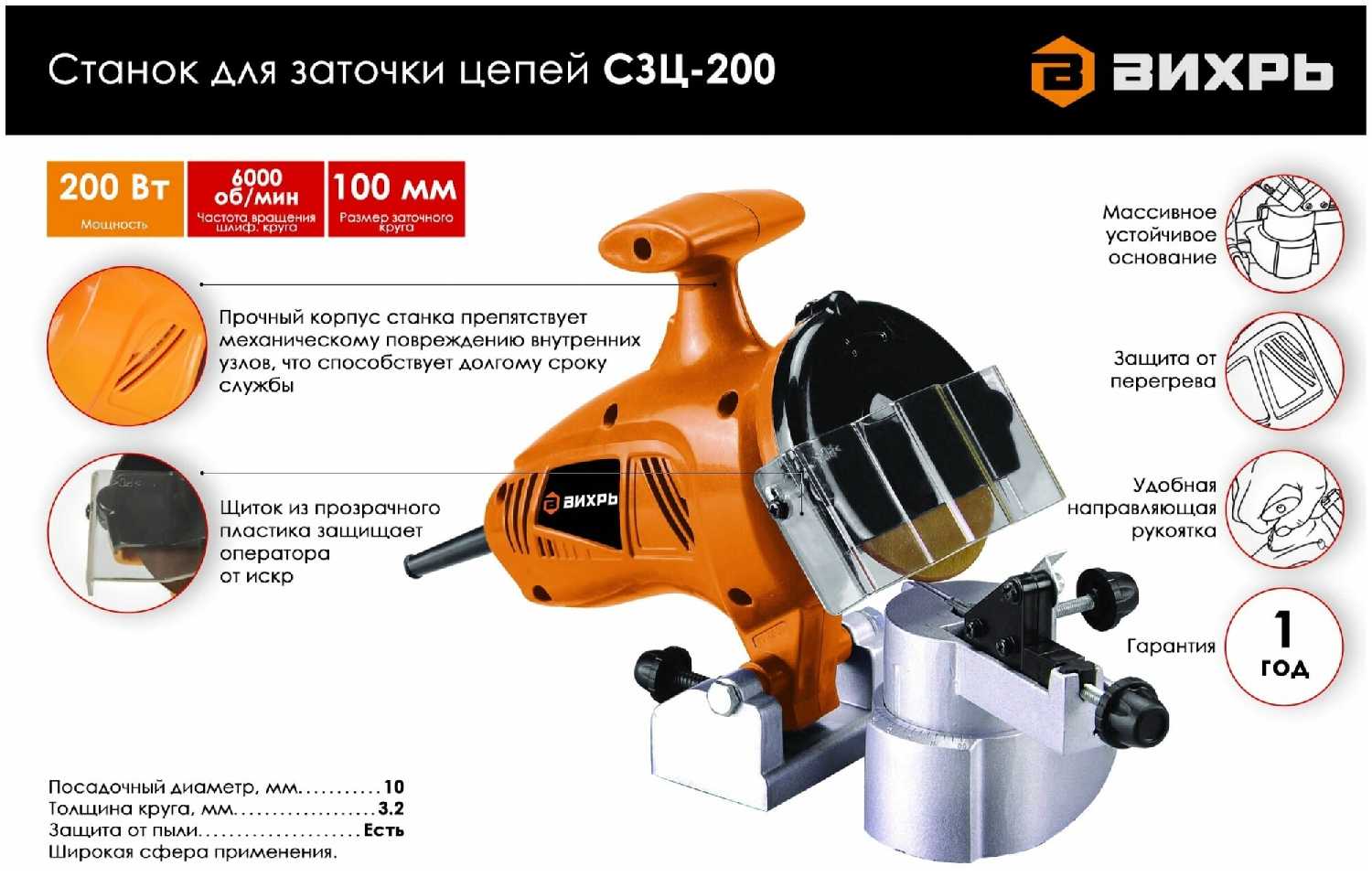 Обзор ВИХРЬ Станок для заточки цепей СЗЦ-200 (200Вт)*: