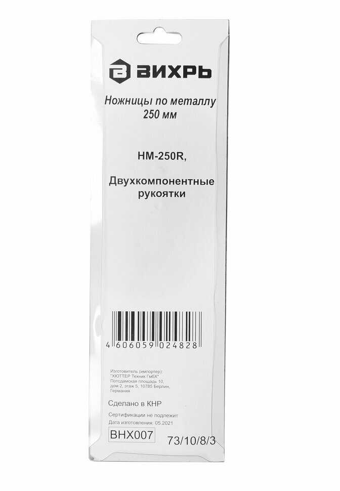 | Дополнительная информация : | Ножницы по металлу ВИХРЬ 250мм правые |