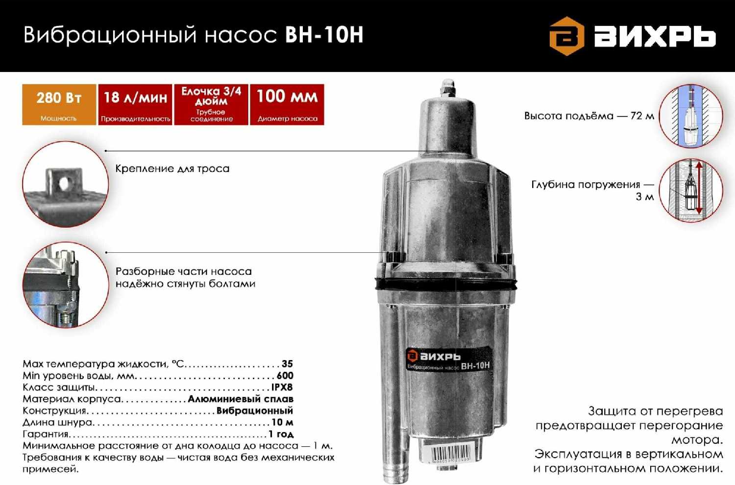 По данному насосу, Вихрь вн-10н: купил данный насос в срочном порядке, по причине выхода из строя насоса другой марки.