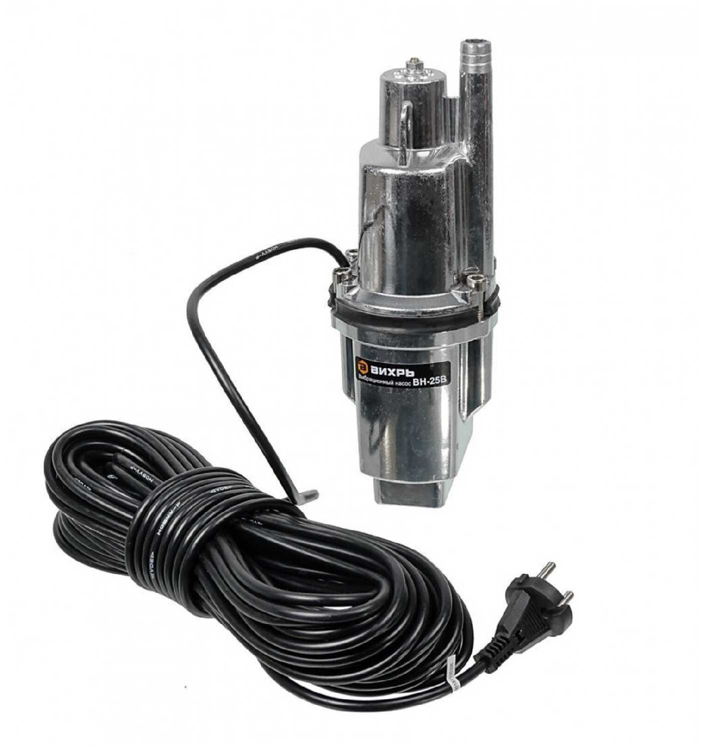 - Длинный кабель (25 м) позволяет размещать насос в удаленных точках без использования удлинителей.