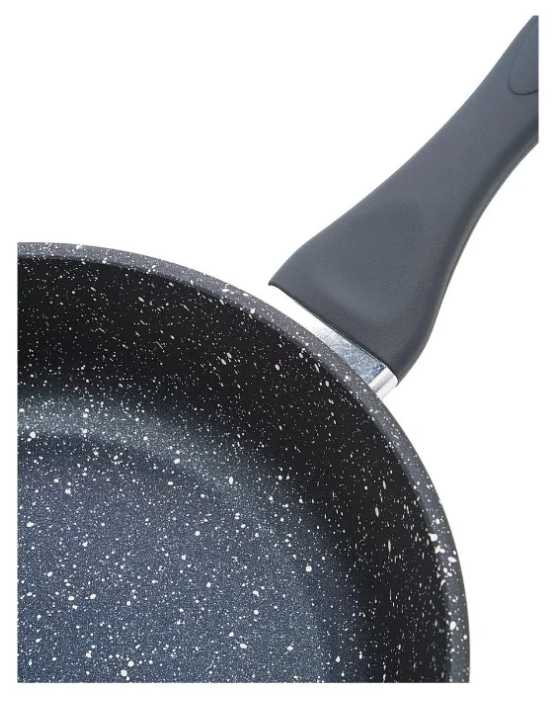 - + Низ сковороды такой же мраморный и соединительная часть ручки чёрного цвета, не будут заметны пригорания от масла, не пригорает, можно использовать без масла