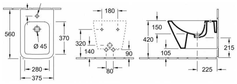 Характеристи Villeroy & Boch Finion 446500R1 с горизонтальным выпуском