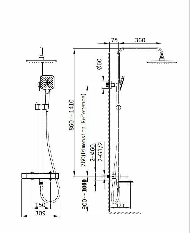 Комплектация : | душевая стойка, излив для набора воды, смеситель, шланг |