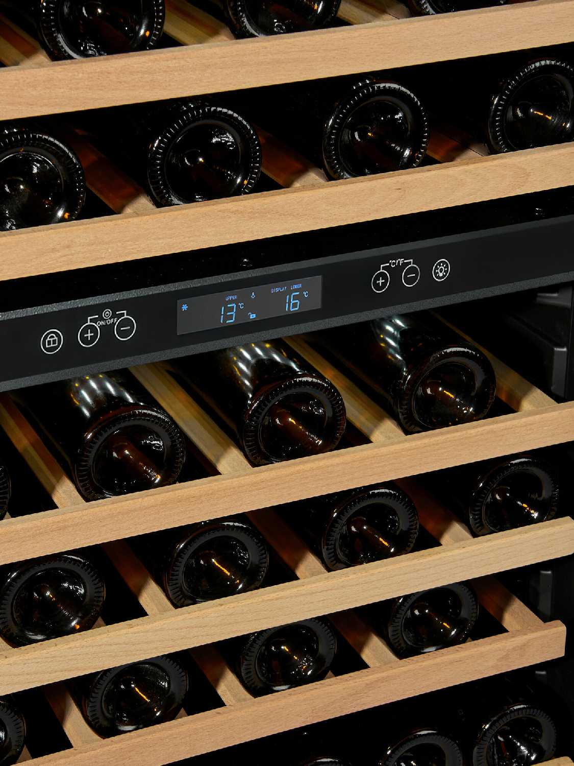- + Хороший винный шкаф. Вписался отлично. Температура соответствует тому, какую выставляешь. Можно хранить одновременно игристые, белые и красные вина. Выставляете 10-11 градусов. Просто красное за 15 минут перед подачей вытащите и можно пить.