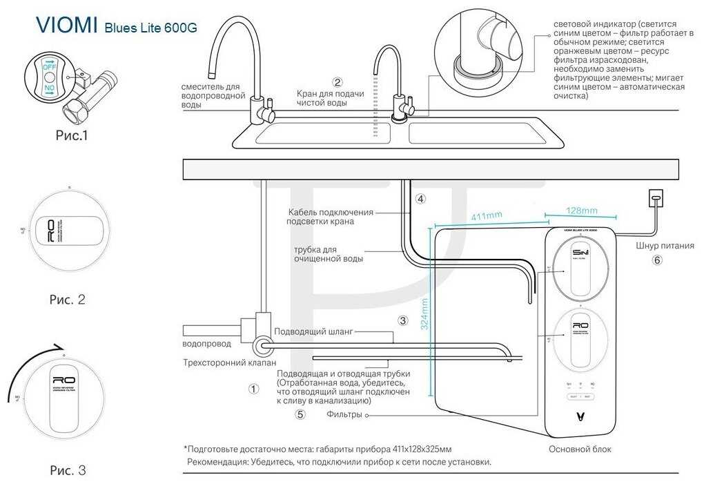 | Особенности : | календарь замены фильтрующего модуля, подключение к водопроводу, помпа для повышения давления |