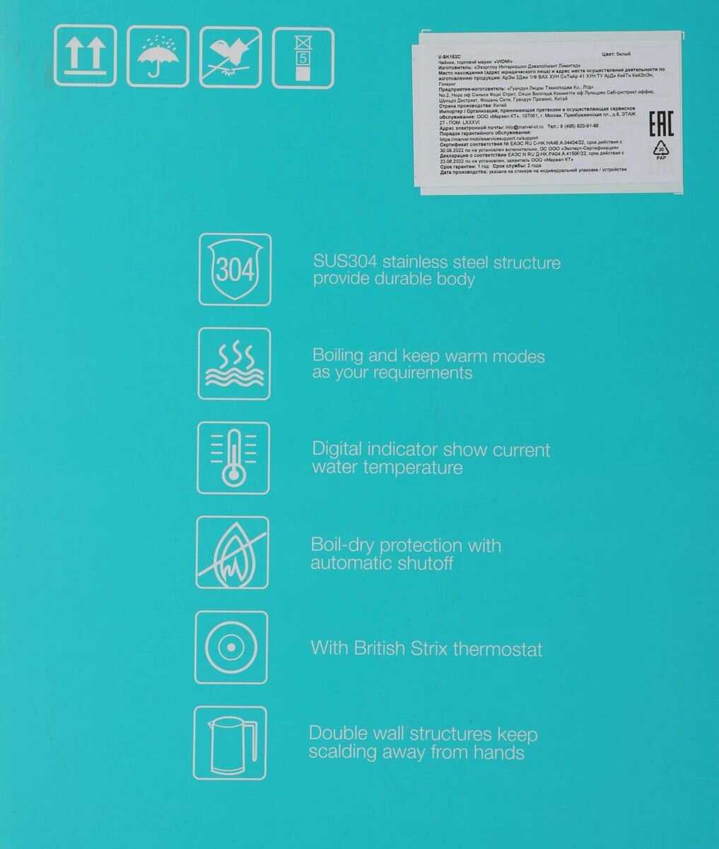 Π₯Π°ΡΠ°ΠΊΡΠ΅ΡΠΈΡΡΠΈ Viomi Π§Π°ΠΉΠ½ΠΈΠΊ (V-SK152C)