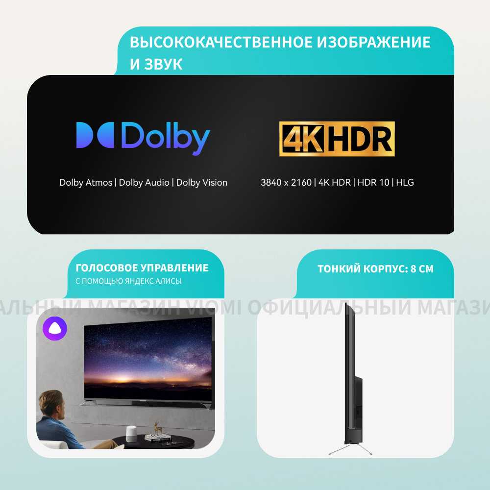 - Высокое качество изображения с поддержкой 4K и Dolby Vision: