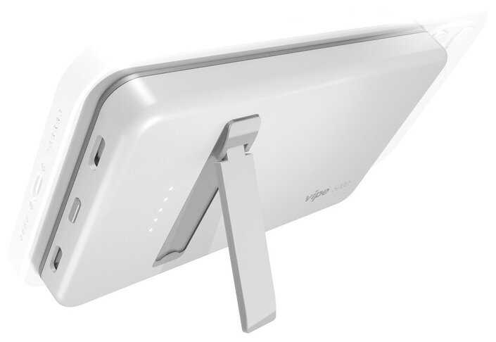хороший внешний аккумулятор от бренда Vipe . на магните. можно одновременно заряжать и аккумулятор Vipe и сам телефон . разъема USB нет - это минус . цвет симпатичный - синий . объем - 5000 mAh - хватит на пару зарядок . Рекомендую всем - хорошая вещь по неплохой цене . Так же есть встроенная ножка для удобства пользования