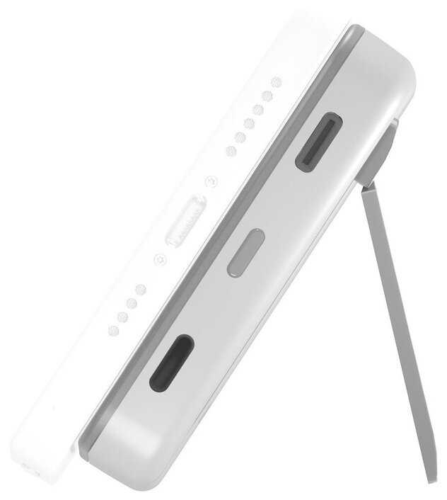 Сильной стороной устройства остаётся эргономика. Встроенная подставка с плавной регулировкой угла, управляемая одной рукой, делает пауэрбанк полезным аксессуаром для просмотра контента. Двухсторонний порт Type-C/Lightning избавляет от необходимости носить дополнительный кабель — важный плюс для минималистов. Однако отсутствие USB-A создаёт проблемы при попытке зарядить гаджеты старше 2018 года выпуска, что частично нивелируется использованием переходников.
