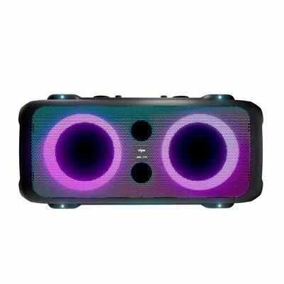 - - Нет ручки для переноски, очень тяжёлая, нет гнезда под юсб, не стерео, неправильно расположены высокочастотные динамики, неудобно переносить с места на место ни за ремень, ни за боковые ручки, короче как чемодан без ручки. ФМ тюнер слабый. Постоянно уходит в полную перенастройку. Антенна в виде провода вставляется сзади и неудобно волочится сзади. Все коммуникации сзади - очень неудобно. Даже индикатор зарядки и тот под резиновой заглушкой. Пульт не блютуз, а обычный инфракрасный. Причем приемник сигнала пульта расположен сверху на панели управления, поэтому срабатывает только тогда, когда пульт направлен на панель сверху или на потолок. Подсветку , кому она не нравится, очень долго выключать с помощью комбинации нажатий на две кнопки. И так каждый раз при включении.