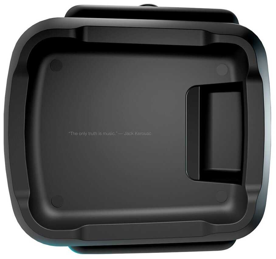 Автономная работа и энергопотребление: Устройство оснащено аккумулятором емкостью 4400 мАч. Заявленное время работы до 10 часов достигается только в идеальных условиях: при средней громкости, отключенной подсветке и деактивированном Nitro Bass. В реальности при громком воспроизведении с активной подсветкой время работы сокращается до 3–5 часов. На максимальной громкости с дополнительными функциями (Nitro Bass, подсветка) батарея садится за 2–3 часа. Зарядка возможна только от сети 220 В через штатный блок питания; зарядка от повербанков или автомобильных прикуривателей (12 В) не поддерживается. Индикация процесса заряда неудобна — одноцветный светодиод расположен среди разъемов на задней панели под заглушкой.