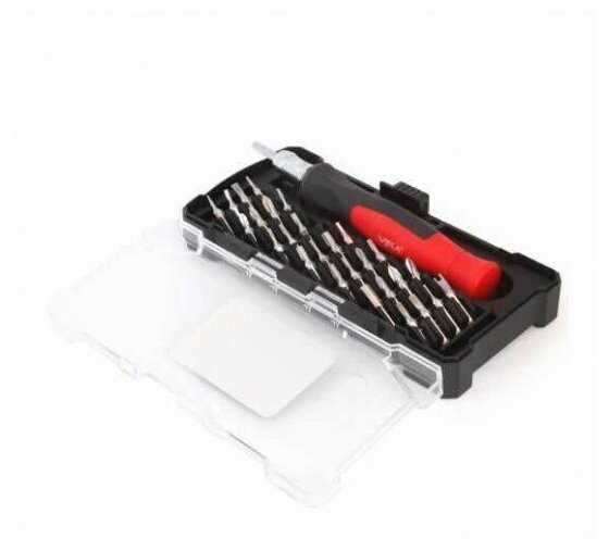 | Биты подробно : | 1/4": SL1.5, SL2.0, SL3.0, PH000, PH00, PH0, PH1, T4, T5, T6, T7, T8, T10, T15, T20, H2.0, H4.0, PZ1, PZ0, pentalobe: 0.8, 1.2, 1.5, 2.0, треугольный: 2.0, 2.3, Y 2.0мм, spanner 2.6мм, однозубый 1.0 |