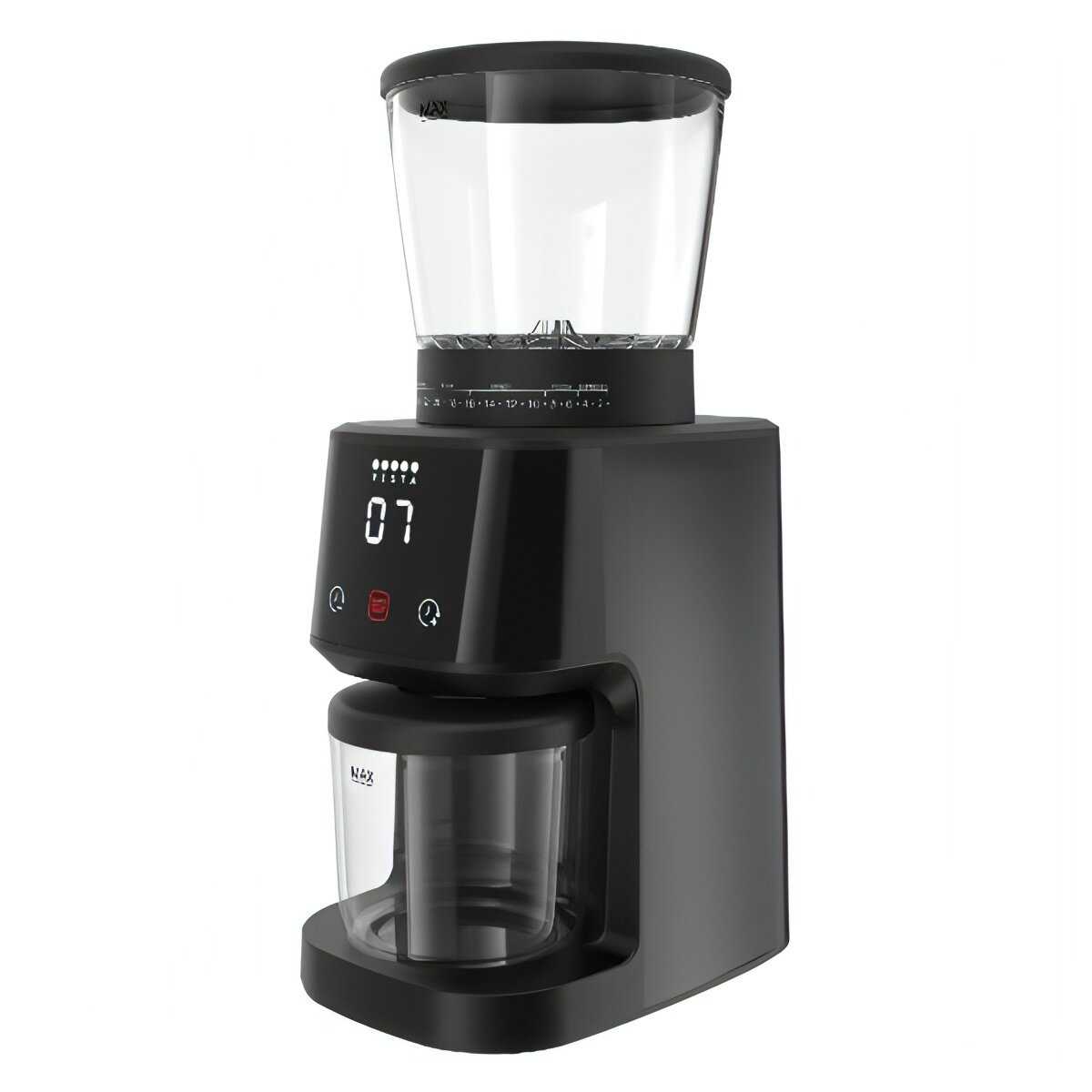 - + выставляется размер помола и время работы до десятых секунды, жернова