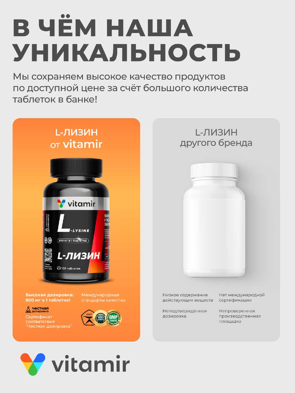 Я принимала l-карнитин от другого производителя, а тут волей случая перешла на "витамир"... по цене - устраивает, по качеству - вопросов нет, работает так же как и другие.