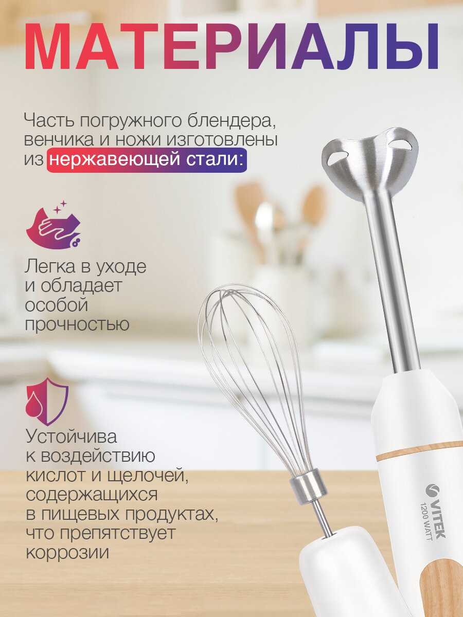 Нержавейка качественная на насадках, мне кажется, что должен долго послужить блендер. Есть турборежим, венчик хороший, взбивает быстро белки. Чаша на пол литра тоже в комплекте