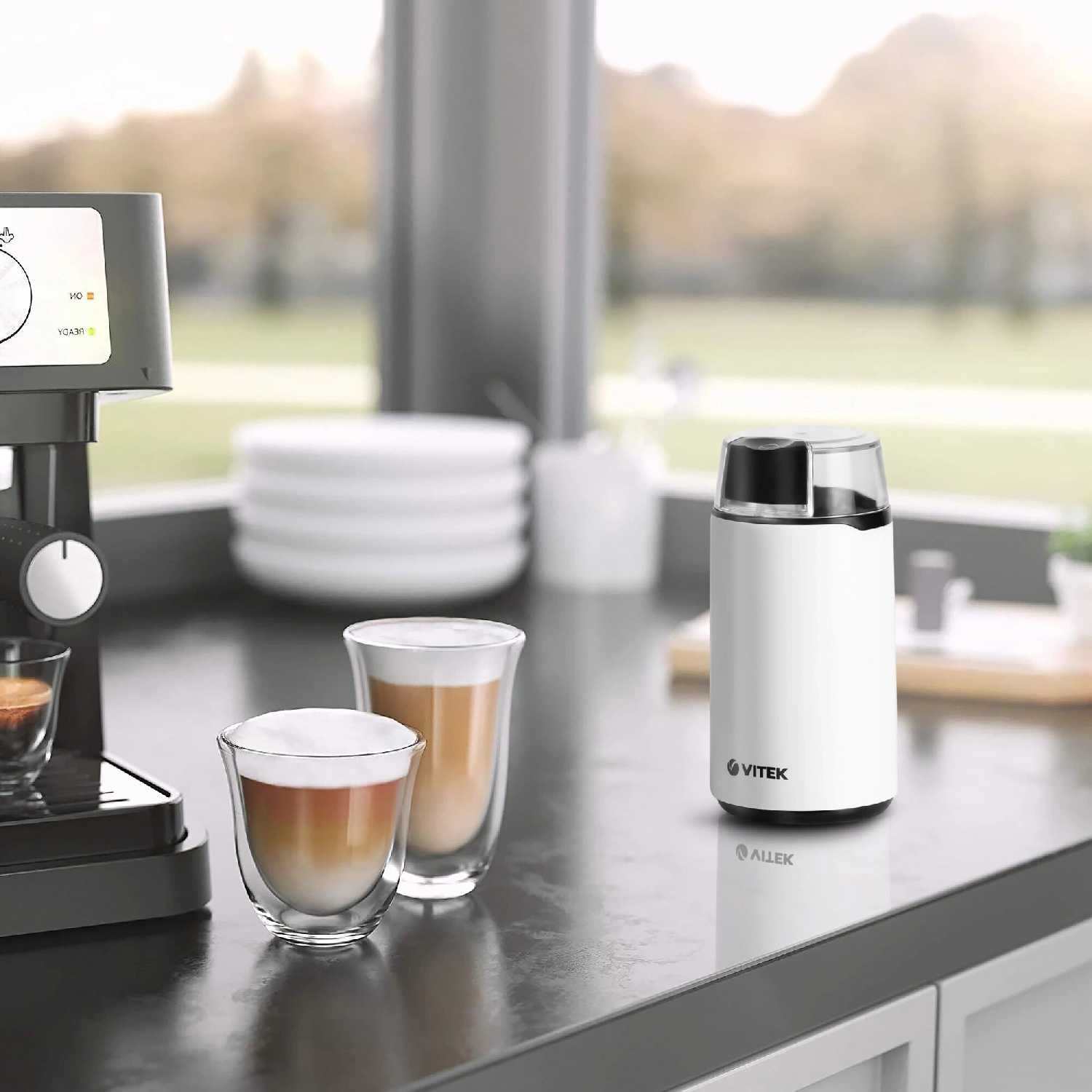 Белый корпус красиво смотрится, крышка прозрачная, так что видно как измельчает зерна и степень помола сразу