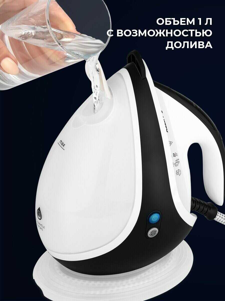 Резервуар на 1 литр позволяет гладить большой объем белья без долива, например, два комплекта евро-размера или полноценную глажку для семьи. Многие пользователи с маленькими детьми хвалят, что не приходится прерываться часто. Вода расходуется равномерно при постоянной подаче пара. Однако для очень больших объемов может потребоваться долив, но это реже, чем у обычных утюгов. -