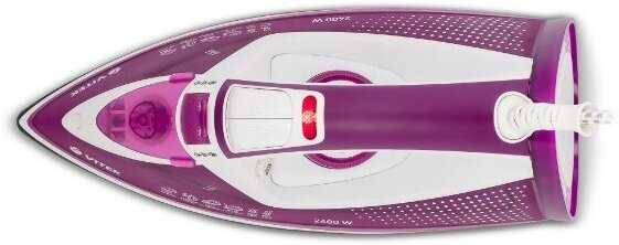 Керамическое покрытие подошвы достаточно бережно обходится с тонкими тканями, симпатичный лиловый оттенок поднимает настроение, достаточно длинный шнур питания не создает проблем в глажке, довольно ощутимый паровой удар .