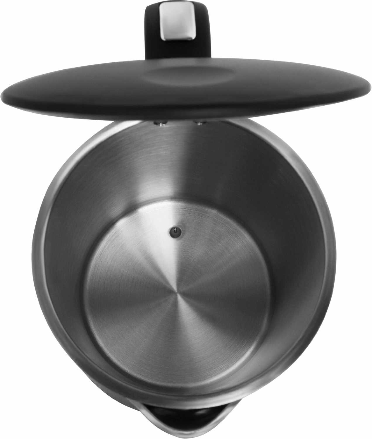 - + Огромный плюс для недорогих чайников - внутренняя часть крышки из металла, поэтому, не смотря на запах пластика, вода не пахнет. Кнопка тугая, не включится случайным касанием. Нержавейка. Широкий верх.