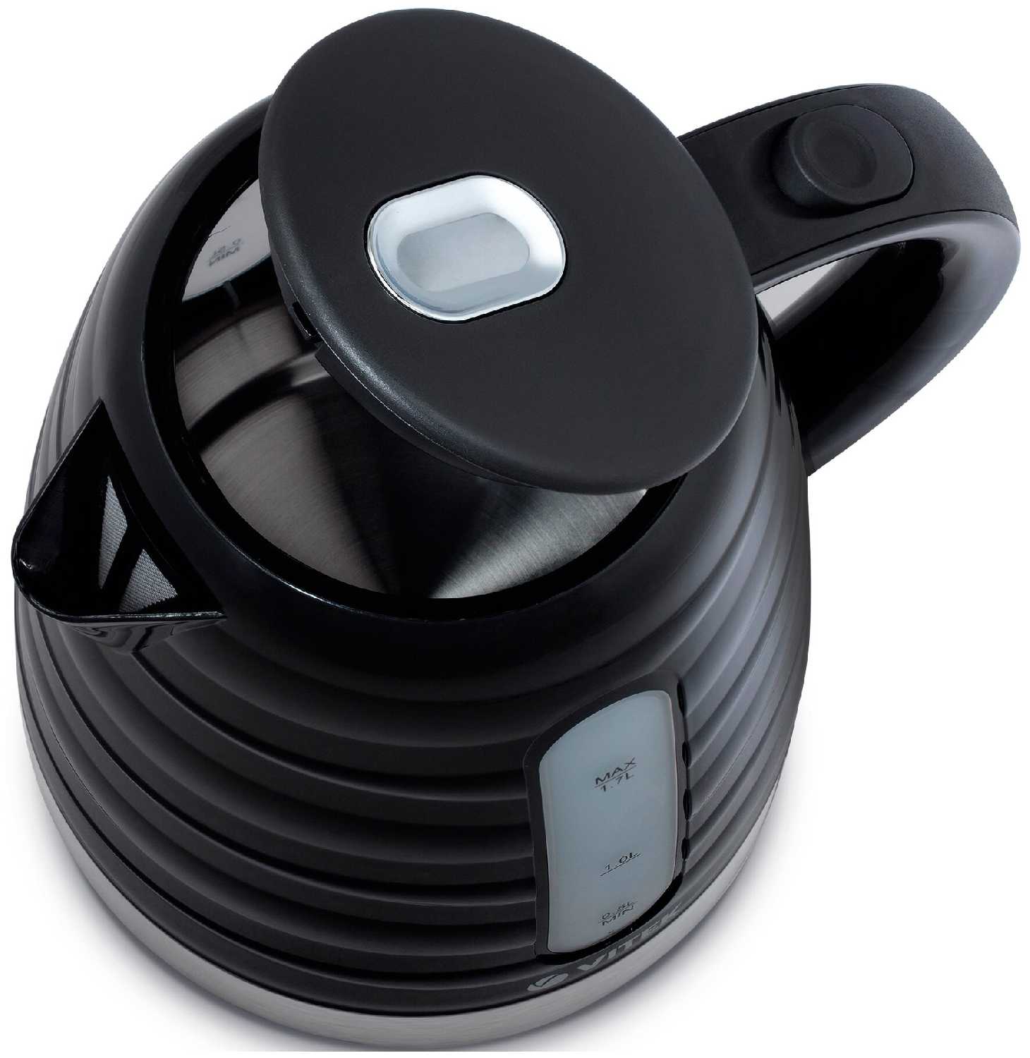 Чайник понравился, и по дизайну, и по характеристике. В корпусе есть стекло для определения уровня воды - это плюс. Кто-то писал, что есть подсветка, но в моей модели такого не оказалось. Запаха нету. Работает, в отличие от другого имеющегося у меня чайника, гораздо тише. Закипает, при полном уровне, примерно за 5 минут. Крышка открывается с помощью кнопки, расположенной на ручке, что очень удобно. Правда, она открывается только до определенного угла, а это для кого-то не совсем будет удобным, чтобы засунуть руку длч мытья. И еще, с учетом скидочных баллов, чайник купил почти за полцены. Так что, покупкой очень доволен. Рекомендую.
