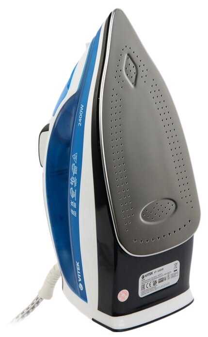 Подошва стальная, это был мой главный критерий, как оказалось их ни так уж и много в основном сейчас керамика, «Витек» оказался самым интересным по цене 2150 ₽, аналоги или совсем дешево или в районе от 9000₽(типа филипс или браун). паровой удар хороший, ручка в верхней части прорезиненная, с торца тоже прорезинена(в вертикальном положении чтоб ставить)