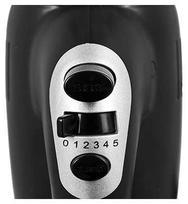 - 5 скоростей и турборежим адаптированы для разных задач: от нежного крема до густого теста.