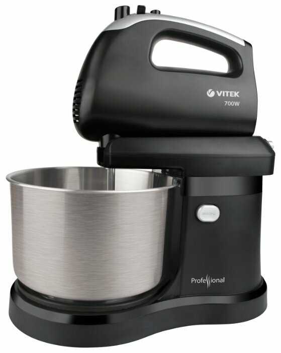 Лёгкая установка/снятие с базы - - Довольно маркий черный цвет (есть белый (VT-1416), миксер такой же, но чаша пластиковая и нет вращения 3Д)