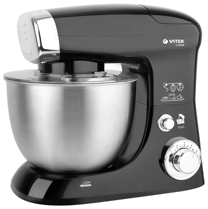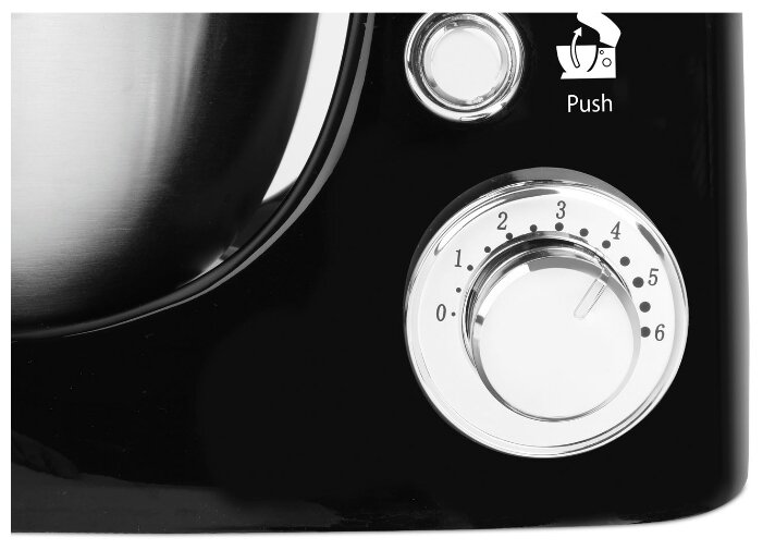 В комплекте к миксеру идут три насадки - венчик, крюк для теста и насадка для крема. А так же лопатка, чтобы соскребать со стенок чаши ее содержимое.