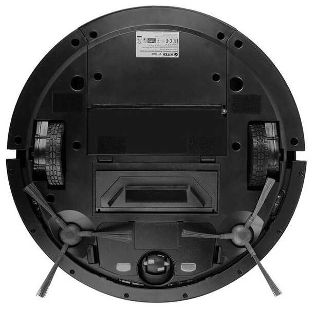 - Боковые щетки с жесткой щетиной направляют мусор к центральному соплу, обеспечивая тщательную очистку углов и вдоль стен.