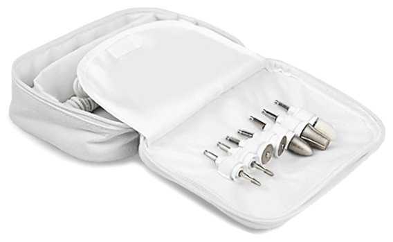 - + Все компактно сложено в сумочку. Сам прибор со шнуром и семь насадок под разные виды обработки. Радует, что есть помимо обработки ногтей еще и обработка кожи на ногах. Справляюсь со своими ногами на ура. Пяточки даже летом выглядят идеально.