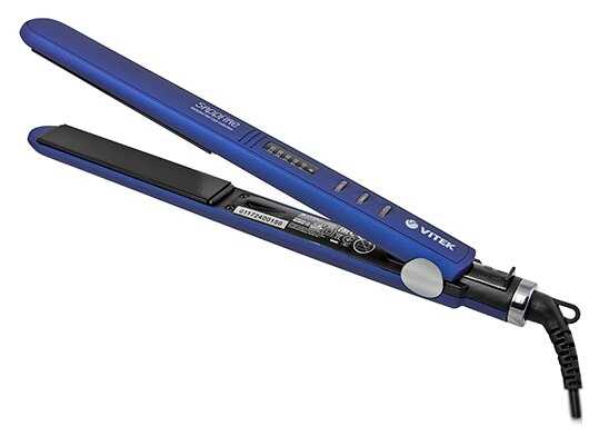 - + Красивый выпрямитель, корпус выполнен в синим цвете. Имеет длинный шнур, что очень удобно при использовании. Температуру нагрева можно регулировать от 140 до 220 градусов. Пластины керамические, пользуюсь плойкой более года для выпрямления волос: все отлично!
