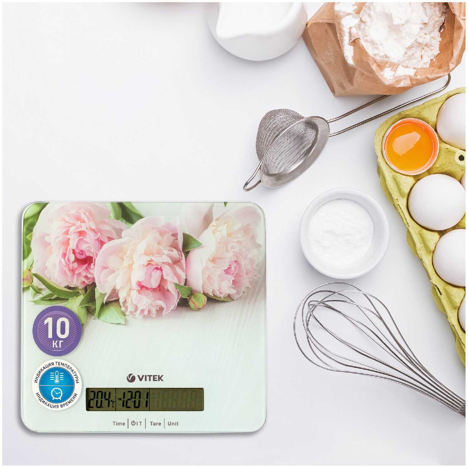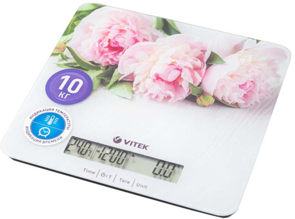 Очень понравились весы, светлый дизайн незаметен. Прошлые весы Vitek VT-8004 были черного цвета, круглые и все время цепляли на себе взгляд. На характеристики при выборе смотрела только цвет и чтобы до 10 кг вес был, а то что на дисплее еще есть термометр стало приятным сюрпризом) Батарейка круглая идет в комплекте, это плюс.