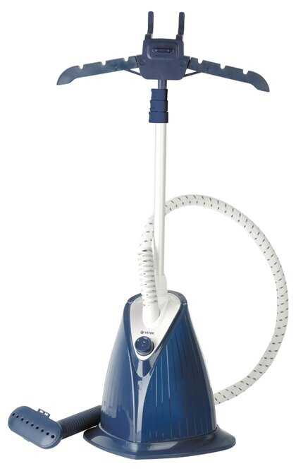 - + Мощный отпариватель удобной конструкции, есть насадка-щетка – ей хорошо обрабатывать верхнюю одежду и снимать лишний ворс с вещей. Стойка регулируется по высоте, кому как удобно. Шланг маневренный, в дешевых моделях бывает что вообще не гнется, а тут все отлично.