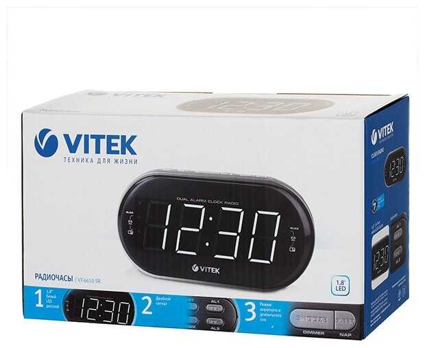 - + Отличные часы, успел купить за 1900, радио ловит хорошо за счёт гибкой антенны , звук удивил ждал худшего, вообще Vitek радует , хорошее качество товаров .